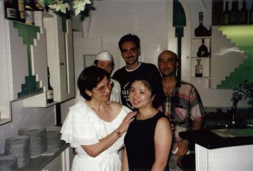 さて、お食事をしていたので、もう1時半過ぎ。 お部屋の用意が出来ましたと呼びに来てくれました。 ホテルはレストランの上に、2階あり全室海を臨むテラス付&ジャグジー付なんですが、私達の部屋はなんと最上階の一番見晴らしの良い部屋にしてくれました。 部屋のテラスからは殆ど遮るものが無く、きらきら光る海を一望できます。 『うわーっ!!すごいー!!素敵っ!!』 思わず子供のようにはしゃいでしまいました。 部屋自体はそんなにすごくないんですが、この景色はちょっと他にはないくらい素敵でした。 テラスの白い椅子に腰掛けて、一休み。 その後、水着に着替えて海に行くことにしました。 さすがに来た道は坂道ですごかったので、『近道は無いのかな…』とホテルの人に聞こうとフロントに行くと、シェフがロビーのソファーでごろんと昼寝をしていました。 なんかこういうのはイタリアっぽいなーと思いました。 シェフの他にも常連客か連泊客のようなおじさんが2人同じようにソファーに転がっていて、おかしかったです。 フロントに誰も居ないのでどうしようと思っていると、シェフが来てくれて、海への近道を聞くと、『ホテルの人に送らせるからちょっと待ってて』と言って、誰かを呼びに行きました。 そして帰ってくると、『今若いのが来るから乗っけてってもらって』と言ってくれました。 さすがにシェフはマリンスポーツ好きなだけあって、綺麗に日焼けしていて、ころんとしていて、なんだか美味しそう…。 こんな美味しそうなシェフが作る料理だからきっと美味しいに違いないと、妙なことを2人で言い合ってしまいました。 |