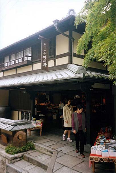 その後もこんな調子であっちにふらふらこっちにふらふら… でも旅行の前から京都で清水焼の醤油入れを買おうと決めていたので、それを求めてと言う感じでしたけど。 私の心の中では、『あら良くば他の物も…』なんて思って物色していたのですが、いいなぁと思うものはさすがに高くてとても手が出ませんでした。 でも食器屋さんを見て歩くのは本当に楽しいです。 今度は、ゆっくりと和食器を探すのを目的に来てみたいです。 結局お互いの意見が合って、無事にお醤油入れも買えました。 それから清水坂の有名な七味屋でも、もちろん、買いこみました。 (でもパリに帰ってから開けてみたら、七味のはずなのに、山椒の割合が多過ぎの気が…。前に買ったときはこんなじゃなかったのに…。ちょっと失敗だった??!!) |