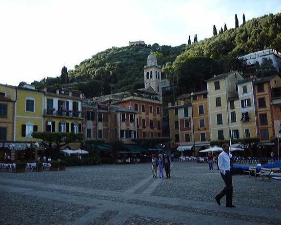 1つはSt. Margherita Ligure(サンタ・マルガリータ・リグーレ)から船で乗り入れる方法と、もう1つは私達のように車で来る方法があり、町の中心部は進入禁止の為、車で来た人はここの広場の駐車場に車を止めて行かなければいけないのです。