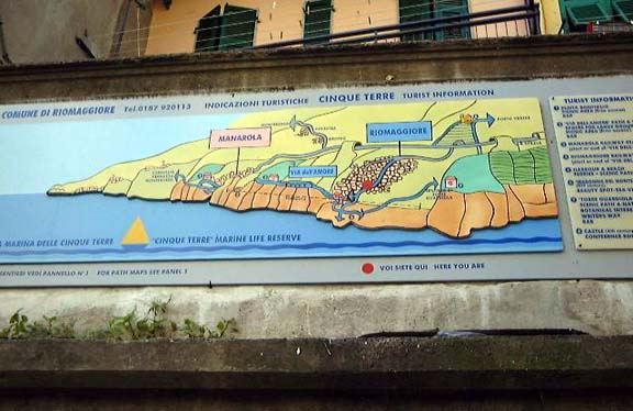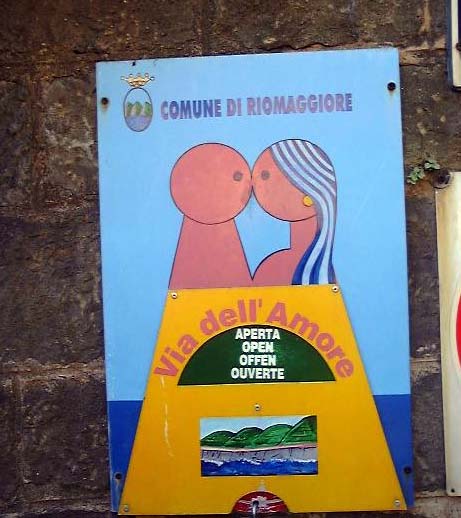 ![]() これは、『ここからVia dell'Amore(愛の小道)です』という看板。 愛の小道にふさわしい可愛らしい看板ですね。 |