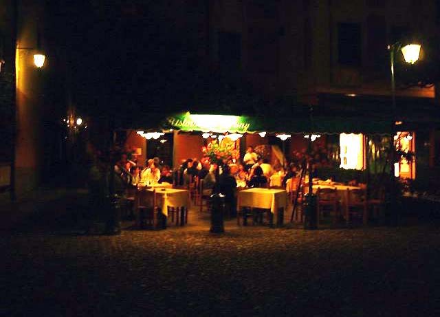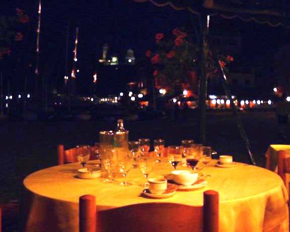 | さて、本日の夜予約したレストランは、Piazza Martiri dell'Olivettaに面した場所にあり、テラス席からは移り行く美しい入り江の風景を見ることが来ます。 そしてここは、日本の雑誌でもフランスのガイドブックでも絶賛していたので、とても楽しみです。 私達が行った頃は、すでに客席の半分は埋まっていて、どのテーブルも予約で一杯でした。 殆どがイタリア人観光客で、カップルよりも家族でというのが多かったです。 ゴット・ファーザーさながらに、おじいちゃんを筆頭に孫までが一堂に会している大テーブルもありました。 さすがに私達が入っていくと、驚かれました(笑) もう、この頃になると露骨に見られるのにもなれましたけど、そんなにじろじろ見なくても…(泣) ミラノやローマなどの一大観光地ならいざ知らず、まだまだイタリア人しかこないような避暑地に東洋人はやっぱり珍しいのかな…?? でも、目があったら、イタリア語で挨拶をするようにしています。 そうすると、とても喜んでくれて歓待してくれる。 これが私のイタリア人の好きなところです。 |