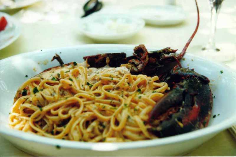 私が頼んだのは、オマール海老のスパゲティ。すごいボリューム!! |