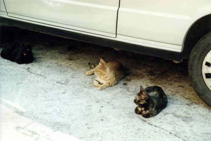 ホテルの駐車場は猫ちゃんの溜まり場になっています。 |