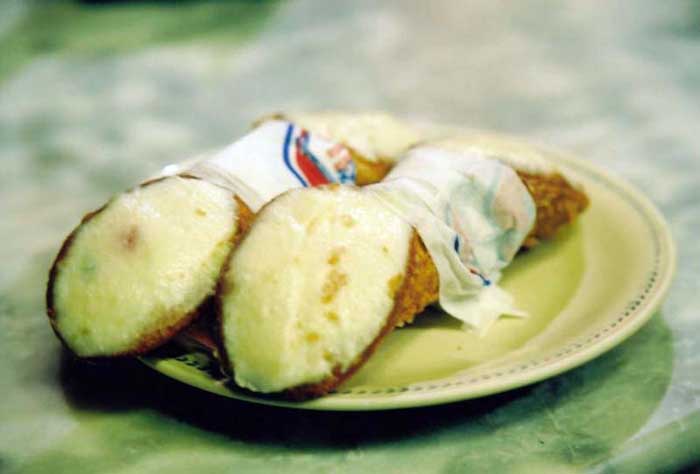 これが私達がいつもおじちゃんにご馳走になるお菓子。シシリアの伝統的なお菓子だそうです。美味しいのだけど、とても甘いのですぐにお腹に溜まってしまいます。食後にはちょっとヘビー・・・(笑) |