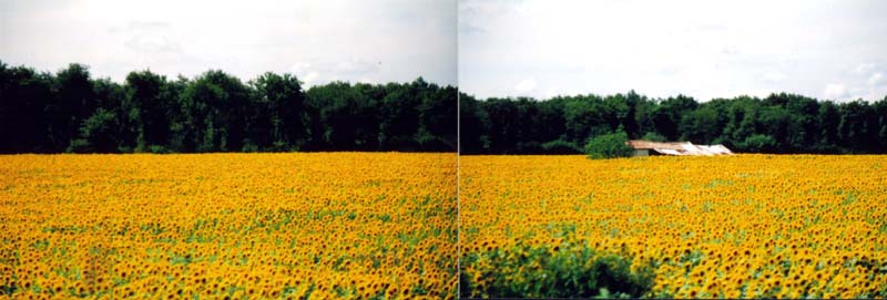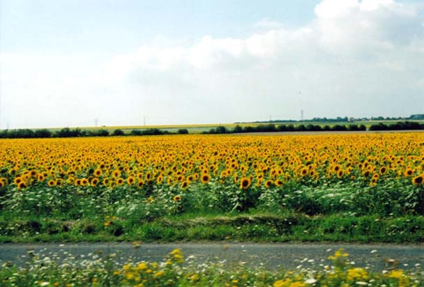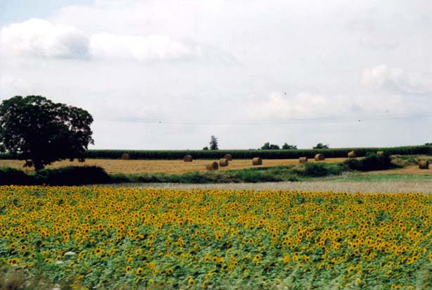 途中高速道路の両脇にヒマワリ畑とトウモロコシ畑が沢山現れて、黄色と緑色の絨毯がどこまでも広がっていてとても綺麗でした。