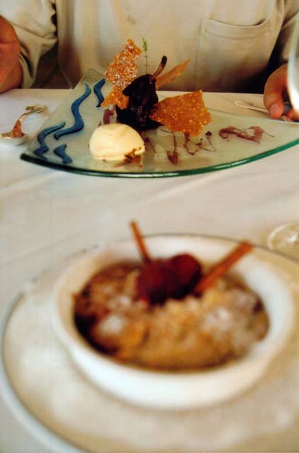 ![]() これがデザート。 オットは、洋梨を赤ワインで似たもの、私は赤い果物のクランブル。 さすがルノートル仕込みの腕前だけ合って、美味しかった!! |
