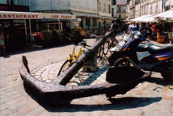 ![]() これはお店の前に飾ってあった錨。 面白いのは錨に皆さん、スクーターやら自転車やらをとめてしまっていること!! |