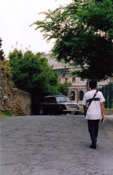 ![]() 小道の間から、コロッセオが見えます。 自動車と2000年前のコロッセオの組合せって不思議・・・。 |