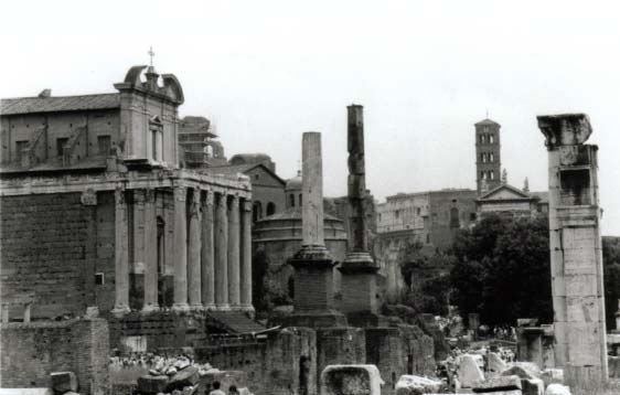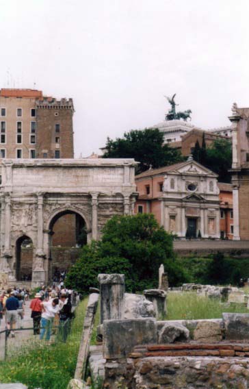 しかも昨日は快晴の夏日だったのに一転して今日は雲行きが怪しい肌寒い日。 う〜ん・・・こんなことなら、昨日遺跡巡りして、今日買物デーにすれば良かった。 ・・・とオットと内心後悔しつつも、取りあえず、コロッセオに向かいました。 地下鉄の駅を出るとすぐにばばーんっ!!と聳え立つコロッセオは本当にすごいものです。 両親も例外無く、『うわー!!すごいねぇ・・・』と呆気に取られていました。 雲行きも怪しかったので先に隣接するフォロ・ロマーノを見学。 私の両親も遺跡好きなので、結構喜んでくれました。 オットなんか、添乗員役を忘れて自分がちゃっかり楽しんじゃってましたもの(笑) |