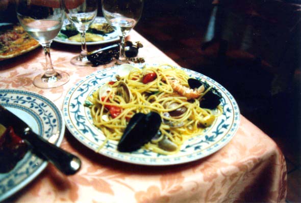 ![]() これは魚介のスパゲッティ。 |