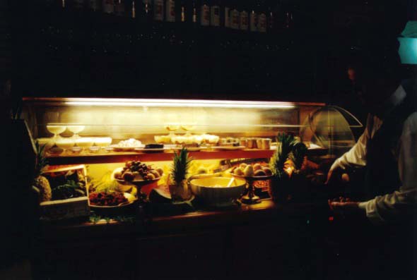 ![]() 色々なデザートと果物が入っているショーケース。 |