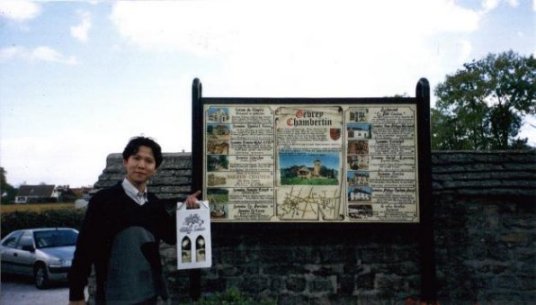 ![]() Gevrey-Chambertin村のはずれの駐車場にて。 思いがけず、良いワインが入手出来て満足です。 後ろの地図は村のCave案内。 |