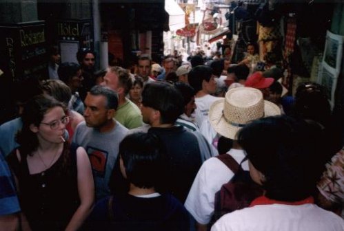 ![]() 食事がてら、夜の町を散策しました。 後ろに見えるのは全部飲食店です。 |
