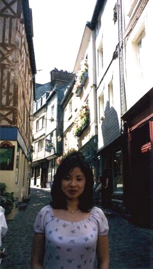 ![]() Gribouilleの前で。 ここではNormandiの物産である、CarvadosやCidreやジャムなどが購入出来ます。 詳しくはLe carnet d'adresses(FRANCE)のNormandiを見てください。 |