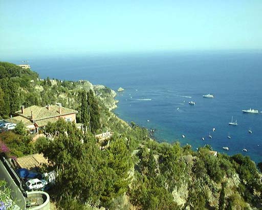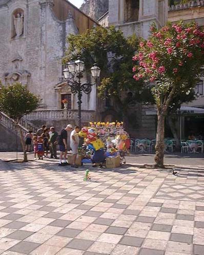 あまりの暑さのせいか、はたまた昼時だからか、一大歓楽街のはずであるTaorminaの中心部なのに人出が少なく閑散としていて拍子抜け・・・。