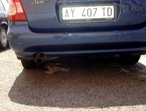 たくさんの猫ちゃんがいたのですが、さすがの暑さに、猫ちゃんたちは涼しい車の下へ避難!! |