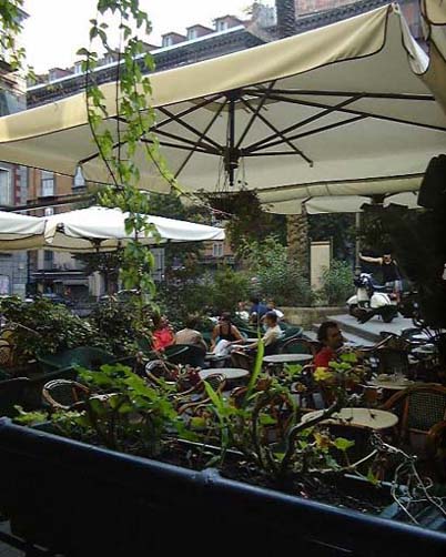 ![]() P.za Bellini(ベッリーニ広場)のお洒落なcafé『Intramoenia(イントラ・モエニア)』。 |