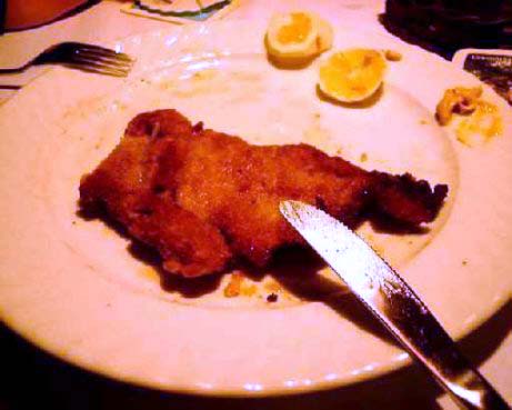 ![]() これも食べかけでごめんなさい。 これがだんなさまが頼んだ、ウィンナーシュニッツェルです。 |