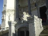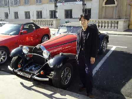 | 結局30分ちょっと中をうろうろ見学して、下のサン・ジャン大聖堂に戻ることにしました。 フルヴィエール・バジリカを後にするとき、バジリカの前に素敵なクラッシックカーが停まっていたんです。 私達が見ているとフランス人たちも寄って来て、みんなで口々に賞賛してしまいました。 せっかくなので、だんなさまは記念に1枚パシャリ。 |